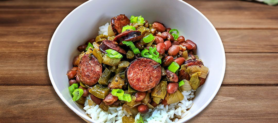 Get your dinner-time fix with this zesty Louisiana-inspired red beans and rice recipe. This slow-cooked one-pot meal offers up so much flavor with a generous helping of peppers, onions, andouille sausage,
