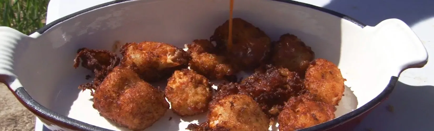 Fabulous homemade tots - Carolina Cooker® style. Don't forget the Carolina Cooker® Fryer to fry your tots to perfection. Serve up this spicy favorite in our Oval Enamel Cast Iron Baking Pan